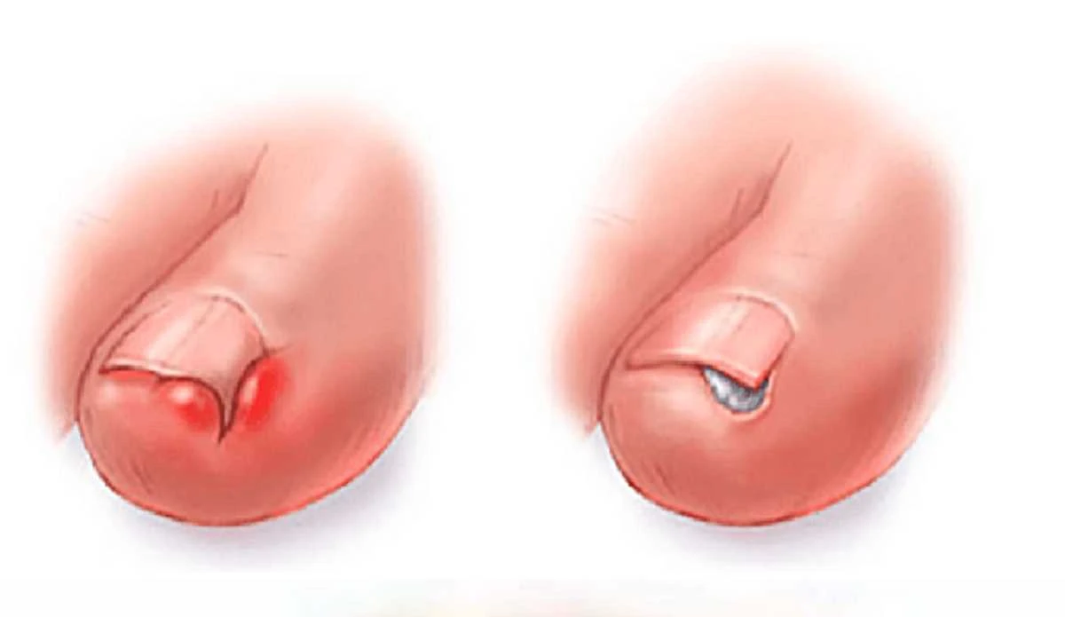 An ingrown nail occurs when the edge of the nail starts to press into or grow into the surrounding skin. It most often happens to the big toe. The main causes include: