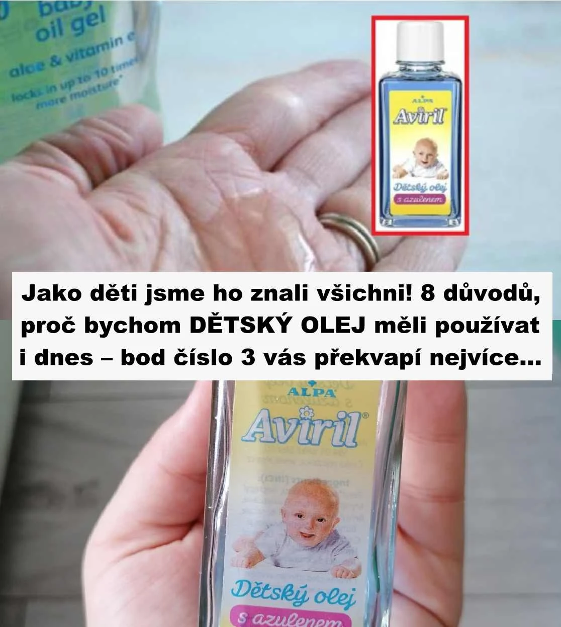 Dětský olej si většina z nás spojuje hlavně s péčí o jemnou pokožku miminek. Málokdo ale tuší, jak univerzální pomocník to ve skutečnosti je. Obsahuje uklidňující látky jako harmanček či azulen, a díky svému složení dokáže pečovat nejen o pokožku celého těla, ale i o vlasy či nehty. Navíc krásně voní a působí antibakteriálně. Přinášíme ti 8 vyzkoušených způsobů, jak můžeš tento „zázračný olejíček“ využít i ve své domácí kosmetice.