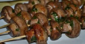 Grilled mushrooms on skewers and from the oven — an excellent recipe