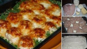 Baked potatoes with zucchini sprinkled with grated cheese and parsley!