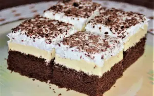 Venetian slices: a moist dessert with coconut, cocoa and egg-yolk cream