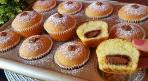 Yogurt muffins with a chocolate heart: A sweet dessert in a few minutes