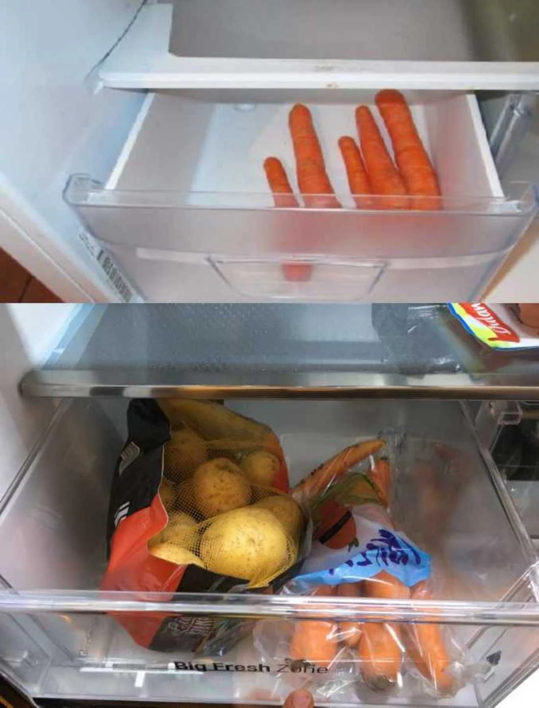 If you store them in the fridge, the low temperature will cause starches to start converting into sugars. The result will be unpleasantly sweet and mealy potatoes and carrots without flavor. Proper storage? In a dry, cool, dark place – ideally in the pantry or cellar.
