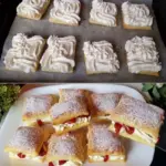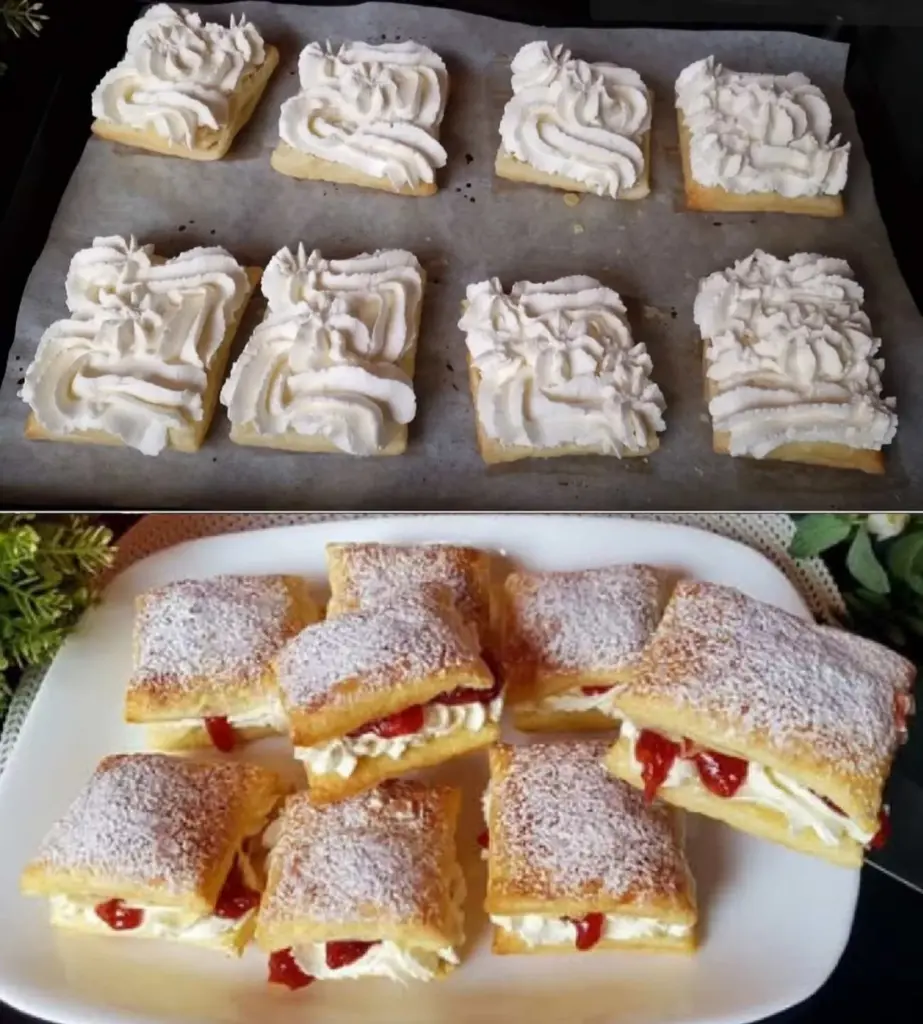 This strawberry puff pastry dessert is proof that even with minimal time and ingredients you can create a delicious pastry that will delight everyone. The crisp pastry perfectly complements the light mascarpone cream and the fruity freshness of strawberries. Ideal for an unexpected visit, a quick weekend dessert or a sweet finish after lunch.