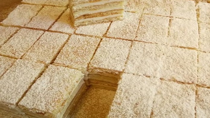 - Assembling the cake: Layer the cake alternately: dough sheet, layer of cream, dough sheet, cream. Repeat this process until you cover the top with the last sheet. Before serving, you can dust the cake with powdered sugar for decoration.