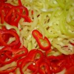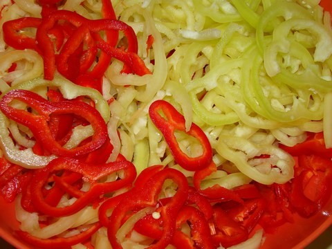 - We remove the core from the cabbage and shred it finely. Cut the pepper into strips.
