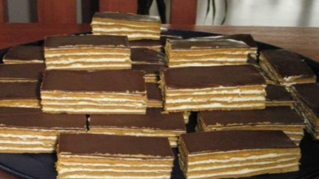 • Assembling: Spread half of the cream on the first sheet of batter. Add the second sheet of batter and spread it with apricot jam. Place the third sheet of batter and spread the remaining cream on it. Finally, cover with the last sheet of batter.