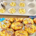 • Filling the muffin tin Place paper liners into the muffin tin. Fill them halfway with batter, then distribute the apples and press them lightly into the batter. Sprinkle a little cane sugar mixed with cinnamon on top – it will create a nice golden crust.
