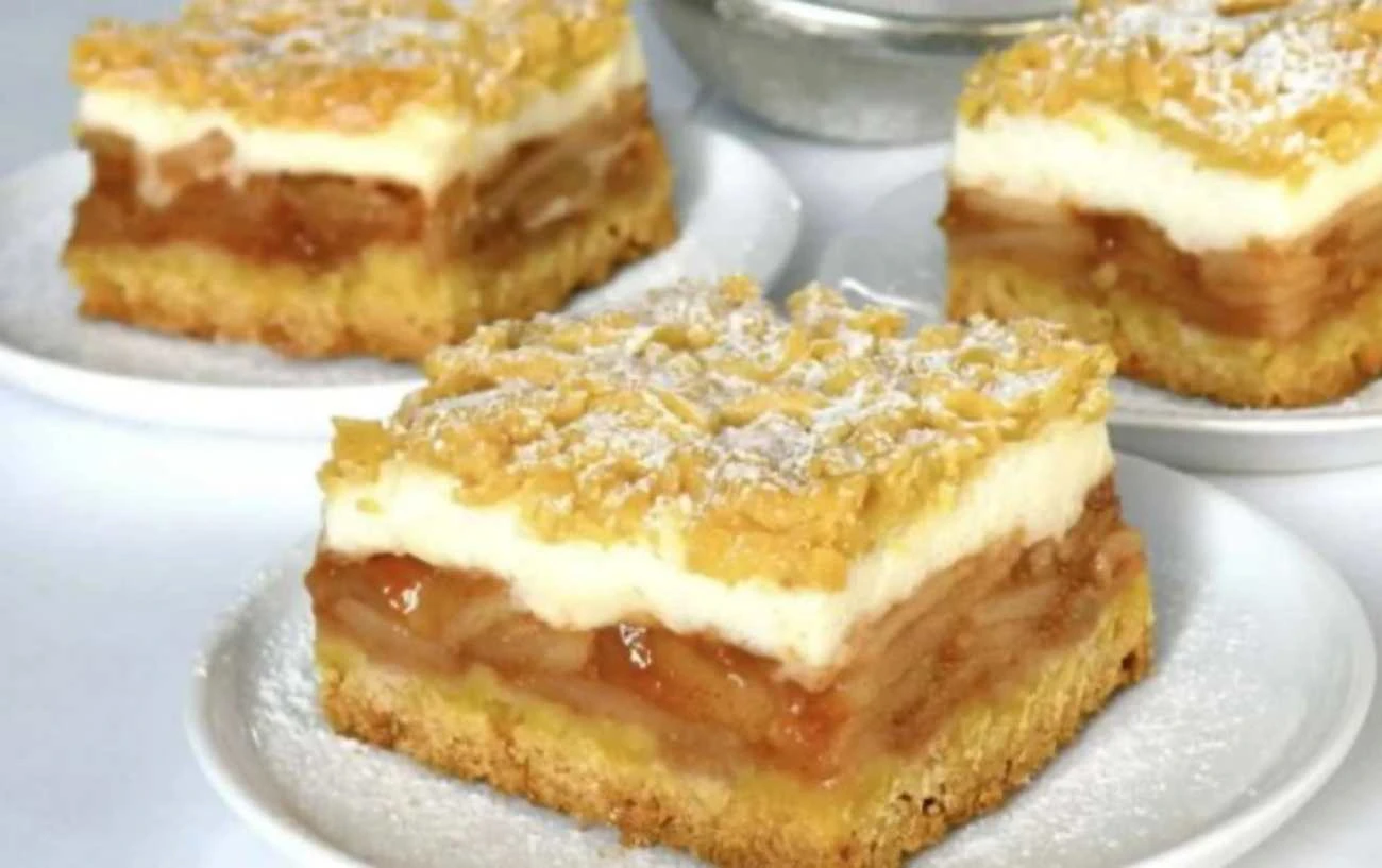 This apple cake is an ideal choice for the weekend, for guests, and for festive occasions. It combines a delicate buttery dough, juicy apples with cinnamon, and a fluffy egg white foam with pudding. Yet it’s a simple cup-measure recipe that even a beginner can manage and the result is perfect every time.