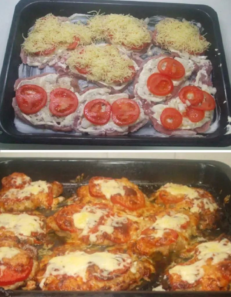 Looking for a quick and tasty dinner idea without unnecessary frying? These layered baked chicken cutlets are the ideal choice – everything is prepared in one baking dish, the marinated meat stays nicely juicy and the baked cheese topping gives the dish a golden crust. Enjoy a simple yet unconventional dinner that will appeal to the whole family.