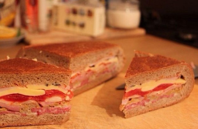 5. To make the sandwich crisper and to melt the cheese, you can bake it in the oven. Bake at 150 degrees for about half an hour. But it's fantastic even without baking.