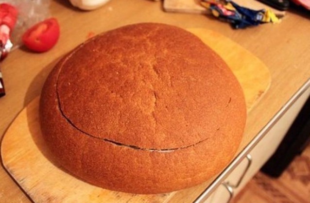 2. Cut off the top of the bread, hollow out the center with your hands and set it aside.