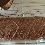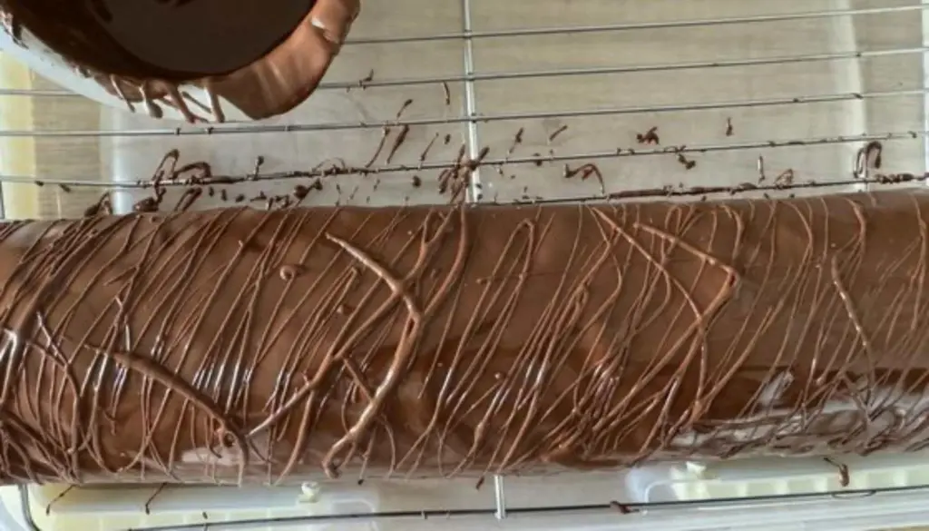 • Place the roll on a wire rack. Melt the chocolate with the oil and pour over the entire surface; you can create decorative stripes to taste. Let chill for at least 3 hours.