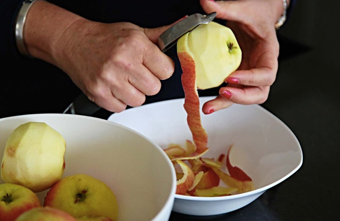 • First we cut the ham into very thin strips. If you bought it whole, then it's enough to grate it on a grater.To the ham we add mayonnaise and the peeled apple grated on a grater.