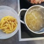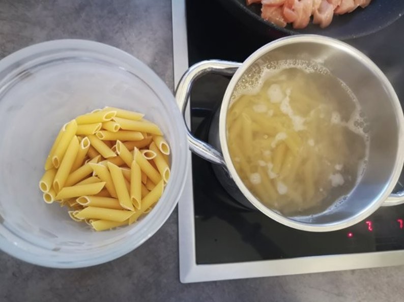 - Meanwhile, bring water to a boil with a drop of oil and a pinch of salt (depending on the size of the pot)