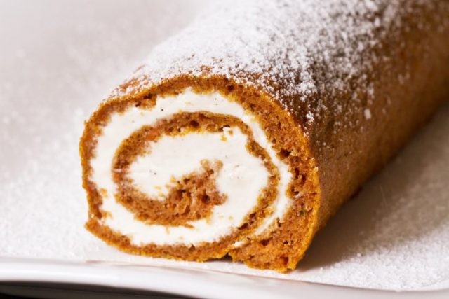 Carrot roulade with a delicate mascarpone cream scented with cinnamon recept