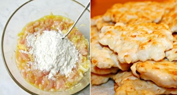 • Mixing the ingredients: In a bowl, mix the grated cheese and the chopped chicken. Add the egg, flour, starch, salt and pepper. Mix everything thoroughly so that all the ingredients combine.