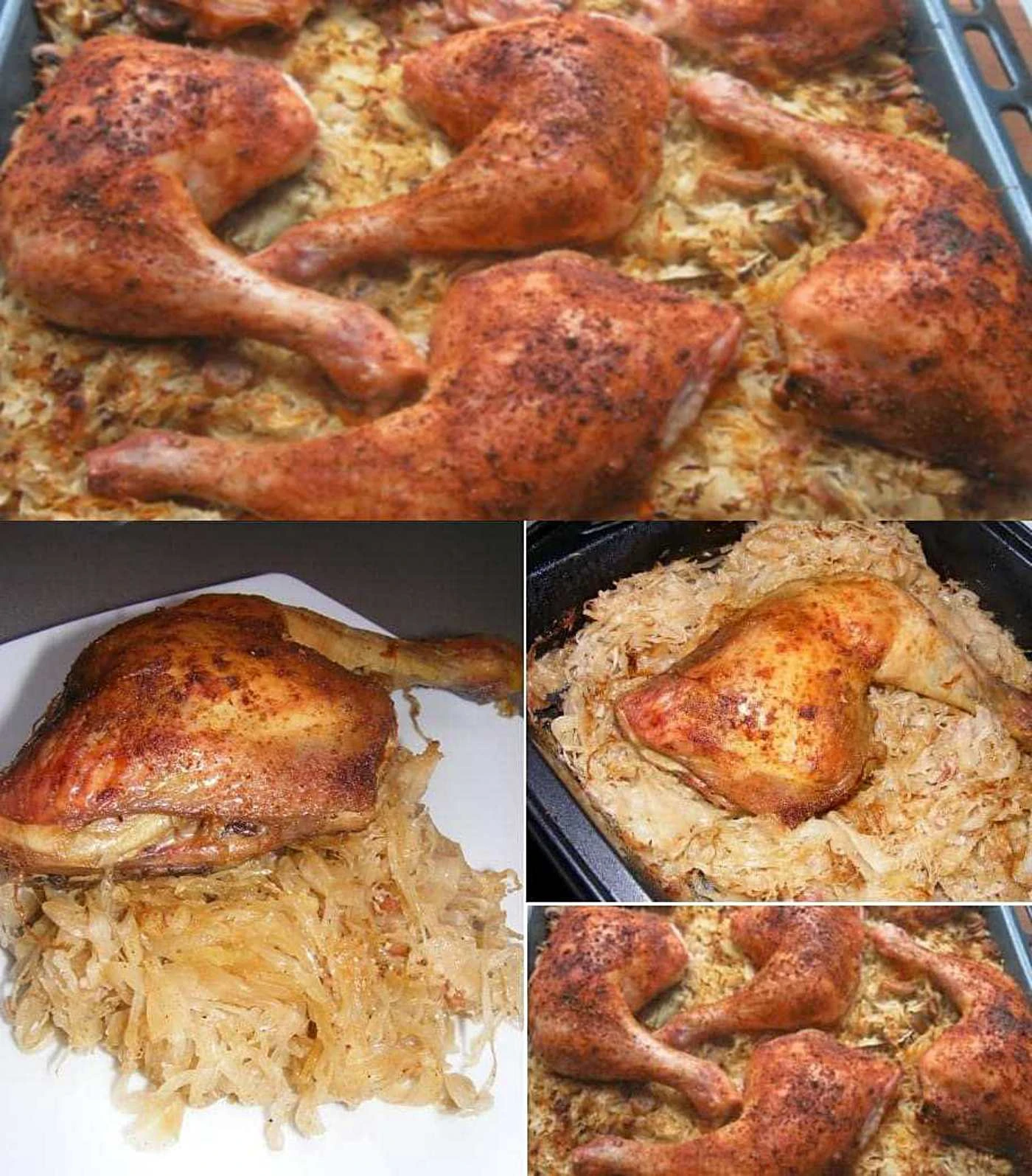 Chicken prepared in a different way, baked with sauerkraut recipe recept