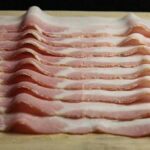 • Fold the overhanging bacon over the surface of the roulade and place in an oven preheated to 170 °C.