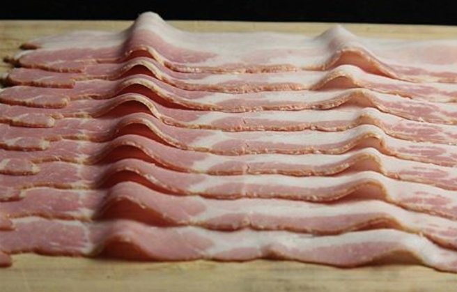 • Arrange half of the slices on the prepared bacon, pour in all of the cream mixture and finally cover with the remaining chicken meat.