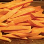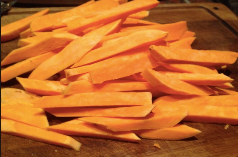 - We line a baking tray with baking paper, on which we place the sweet potatoes.