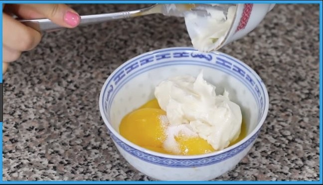 1. In a bowl we mix the quark, grated cheese, pepper, salt and eggs. Finally, into the mixture we fold in tuna drained of juice or finely chopped ham.