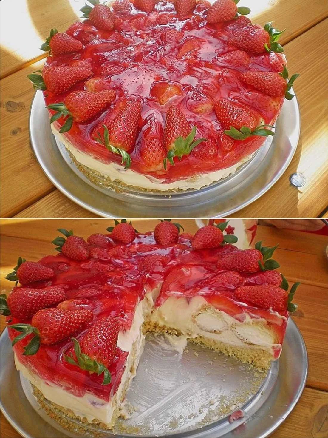 The cream puff cake with strawberries and egg liqueur is an ideal choice when you want to quickly create an impressive, fresh yet decadent dessert. The combination of the buttery base, a light quark-and-whipped-cream filling, crunchy cream puffs and fresh strawberries complemented by a hint of egg liqueur will delight any sweet tooth. Thanks to the easy preparation, you can enjoy it on an ordinary afternoon or serve it at a family celebration.