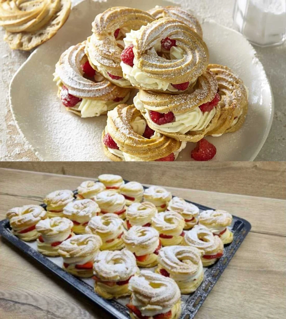 Homemade cream rings with vanilla cream and strawberries look like they came from the display of a top-tier patisserie — and they taste even better. Their preparation requires a bit of patience, but the result is definitely worth it. Treat yourself to this delicate treat at a family celebration, holiday or just for pleasure — they will always be the hit of the table.