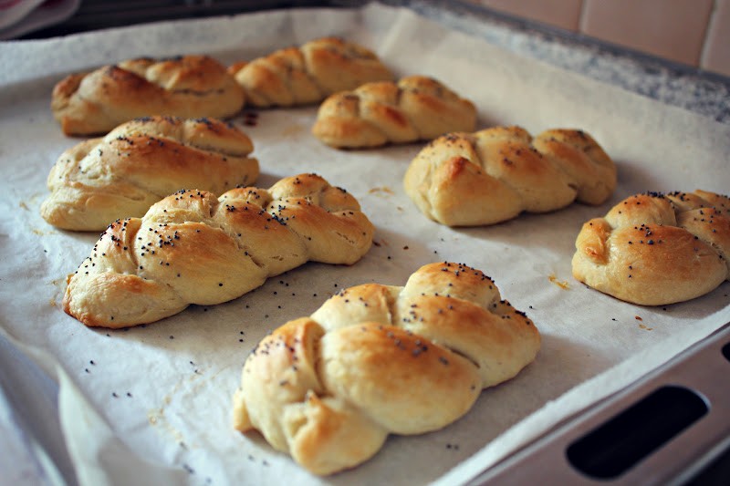 - Brushing and baking: Brush the rolls with the mixture of egg white and oil. Sprinkle with coarse salt, caraway, sesame or poppy seeds to taste. Bake in a preheated oven at 200 °C for about 15 minutes until golden.