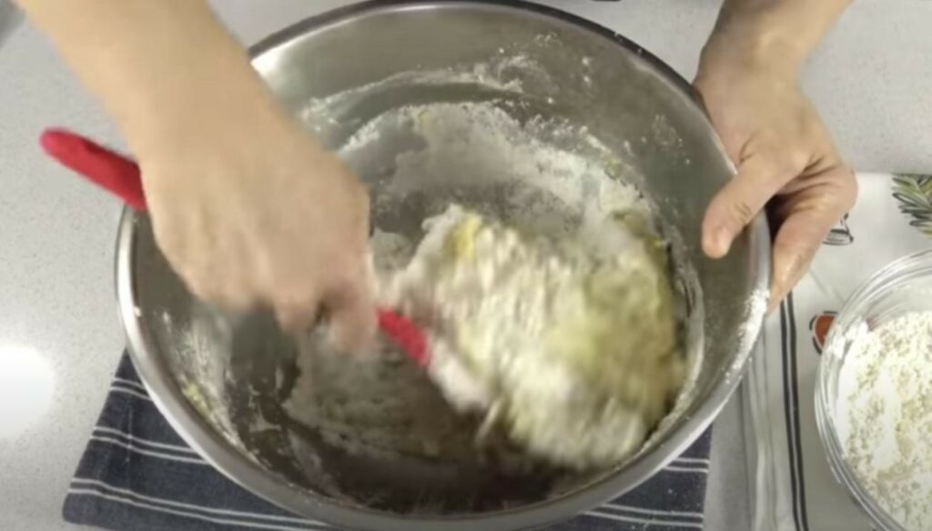 • Work the dough by hand until smooth; it will be sticky, don't be afraid—just flour your hand. Mix for at least 10 minutes, then put it in a warm place to rise.