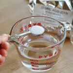 In another cup dissolve the natural rennet similarly in the same amount of cold water as the citric acid.