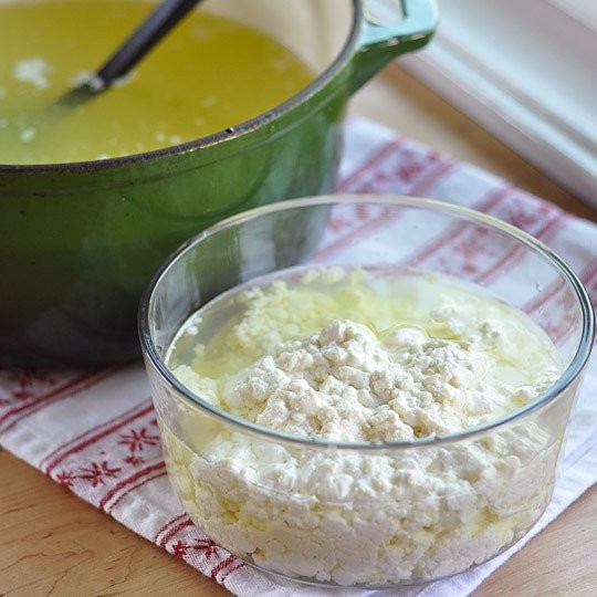 - In the pot where the milk mixture rested, the curd-like part should slowly separate from the whey (the yellow liquid).