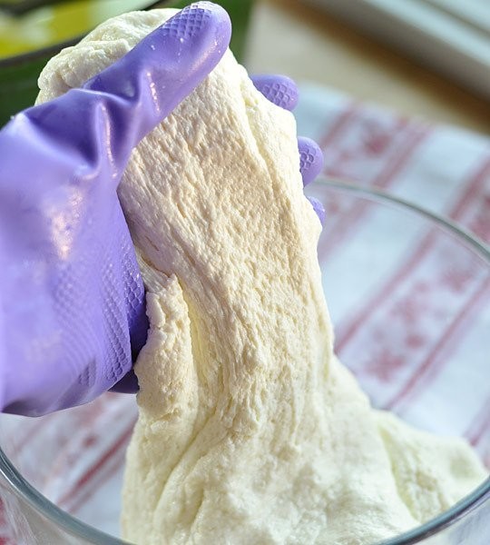 - Remove the lumps, gently salt them, and work them like dough until cheese forms.