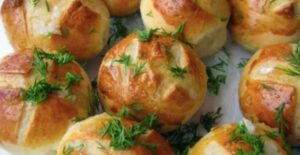 - Dough preparation: On a work surface, process all the ingredients for the dough and form a roll. Cut the roll into smaller pieces and use them to fill mini cupcake molds. Bake at 150 °C until golden. After baking, the cups will easily release from the molds.