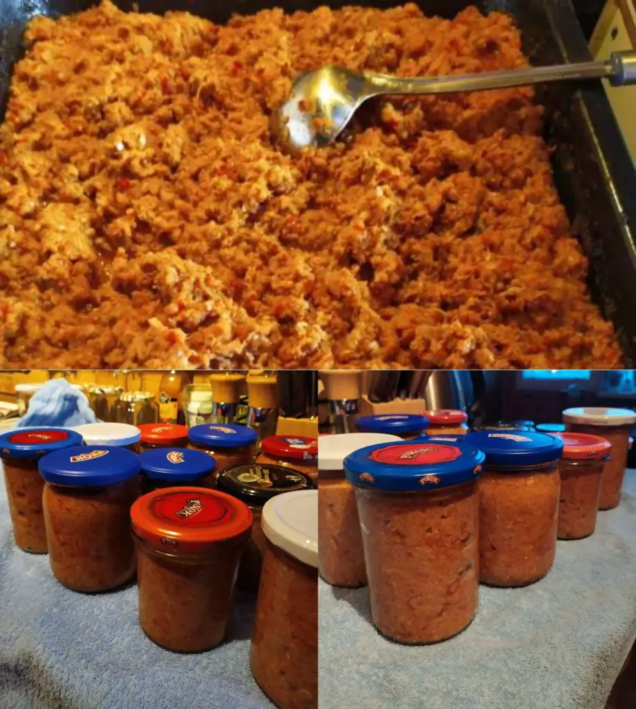 • Long-term storage – safe option: The mixture contains meat, the safest method is pressure canning (pressure cooker / canner 121 °C) according to the device instructions.