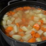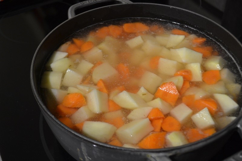 - 1. Preparation of fruit and vegetables: Peel the carrots and apples, then cut them into small cubes. Put them in a pot with water and cook until softened.