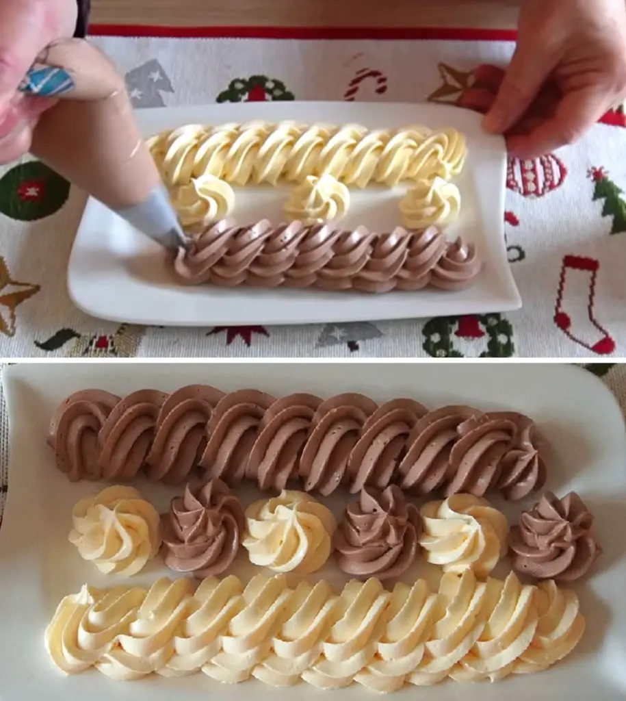 • Cocoa version If you want part of the cream dark, divide the finished cream into two portions and stir sifted cocoa into one.