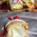 • Filling and setting: While still hot, slice the éclairs in half and let them cool on a rack. Spread a thick layer of vanilla cream on the bottom half of each éclair and close with the top. Let them set in the refrigerator for at least an hour.