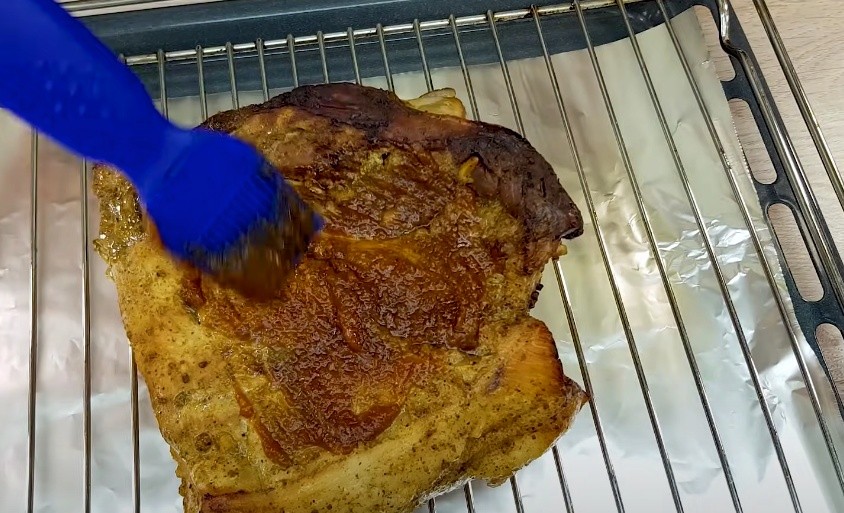 • Unwrap the baked meat from the foil and brush it all over with the prepared marinade on all sides.