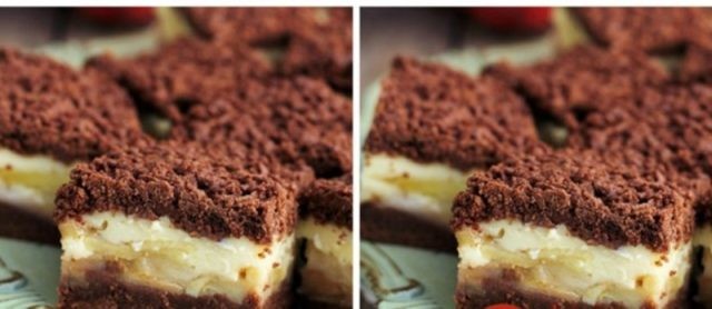 - Preparing the dough: Cut the softened butter into a bowl, add the sifted flour with baking powder and powdered sugar. Add the egg yolks and cocoa (if you want a cocoa dough). Work the dough into a smooth dough with your hands. Although the dough may first seem crumbly, the butter will melt during kneading and the dough will come together. Set aside the smaller half of the dough in the refrigerator to firm up.