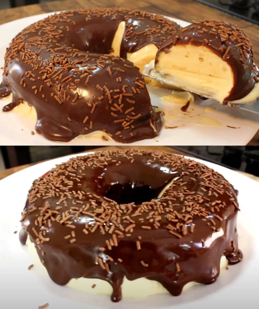• Unmold the finished frozen dessert and pour the chocolate glaze over it.