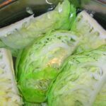 • Cook the cabbage cut like this in salted water until it softens slightly.