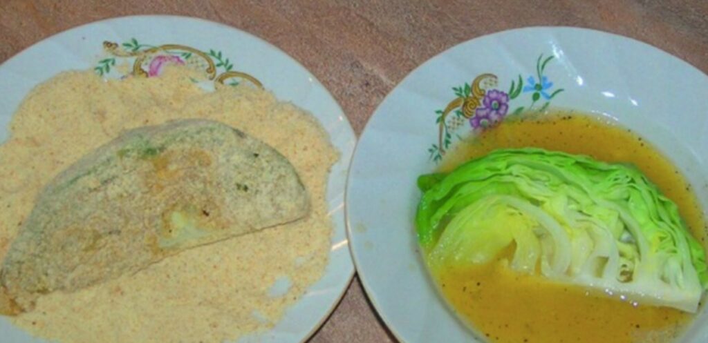 • Coat the cabbage in a three-stage breading; it will be very tasty and crispy.