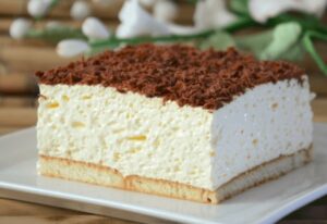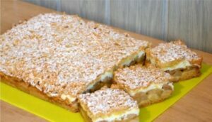 The Kráter Cake with pudding and sour cream is proof that an impressive dessert doesn’t have to be complicated. The vanilla pudding creates soft islands in the delicate batter, while the cream topping enhances the overall flavor and adds moistness to the cake. This dessert will not only refresh but also delight all lovers of delicate pastries.