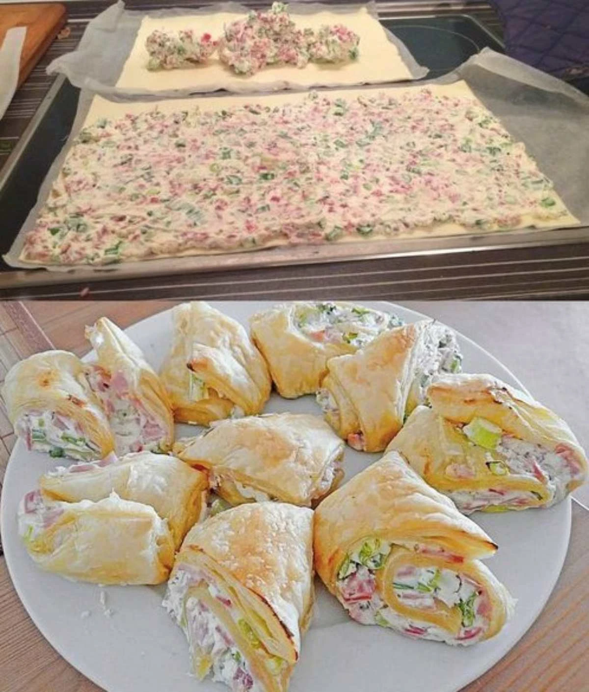 The Flammkuchen roulade is a great choice when you want to make an impressive and tasty dish from few ingredients. The yeast-free dough is quick to make, the filling of sour cream, bacon and onion is a tried-and-true classic and the whole thing bakes in just a few minutes. The roulade slices well, works as a main course or as a savory treat for guests. Once you try it, it will easily find its place in your repertoire of quick savory recipes.