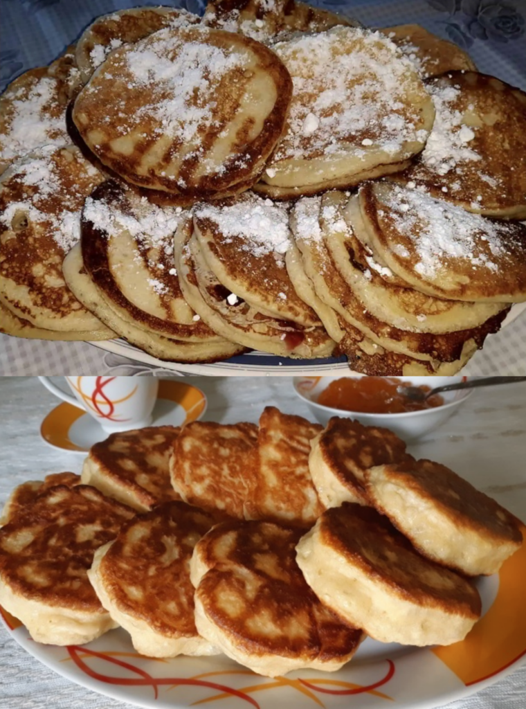 If you like fluffy and moist pancakes, this recipe is for you. The batter is very simple, you make it with a single cup of ingredients, while the apples give the pancakes juiciness and a delicate flavor. The best part is that no yeast is needed in the batter, so you get the result quickly and without unnecessary waiting. This recipe is ideal for a sweet breakfast or as a great dinner for the whole family!