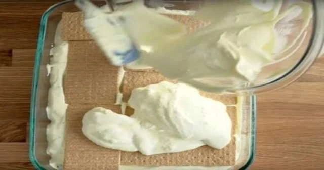 • Layering: Place a layer of cookies on the bottom of the pan. Spread half of the prepared cream onto the cookies.