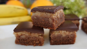 • Finishing: Place the second sheet of pastry, which you previously covered with the caramel glaze, on top. Let the dessert set in the refrigerator and cut into neat slices.