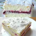 • Finishing Whip the cream until stiff and spread it evenly over the fruit layer. Top with the second sheet of dough, press down lightly and refrigerate for at least 1 hour. Before serving, dust with powdered sugar and cut into slices.