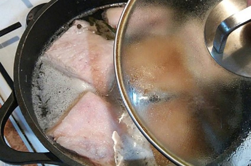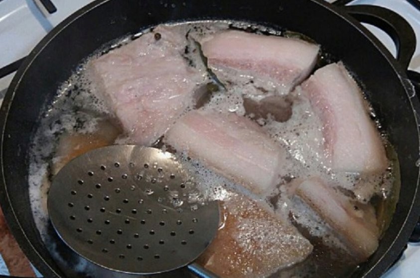 - Once the bacon begins to boil, remove the foam, reduce the heat and cook for exactly 5 minutes.